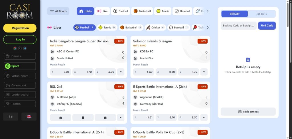 Casiroom Casino also includes a sportsbook, allowing users to place wagers on major sports and live events. Available sports include: