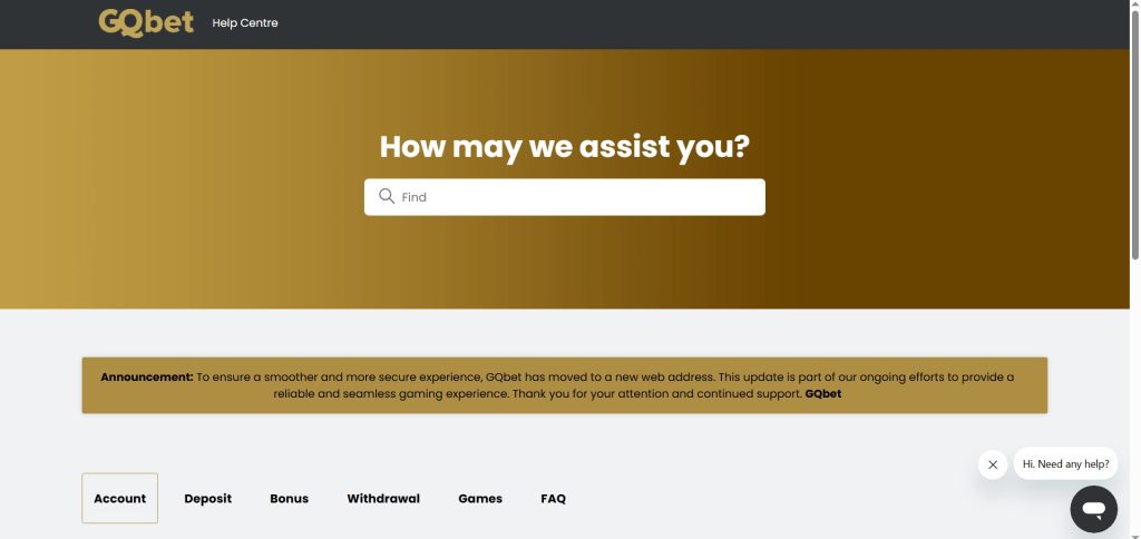 - Help and Support at GQbet Casino