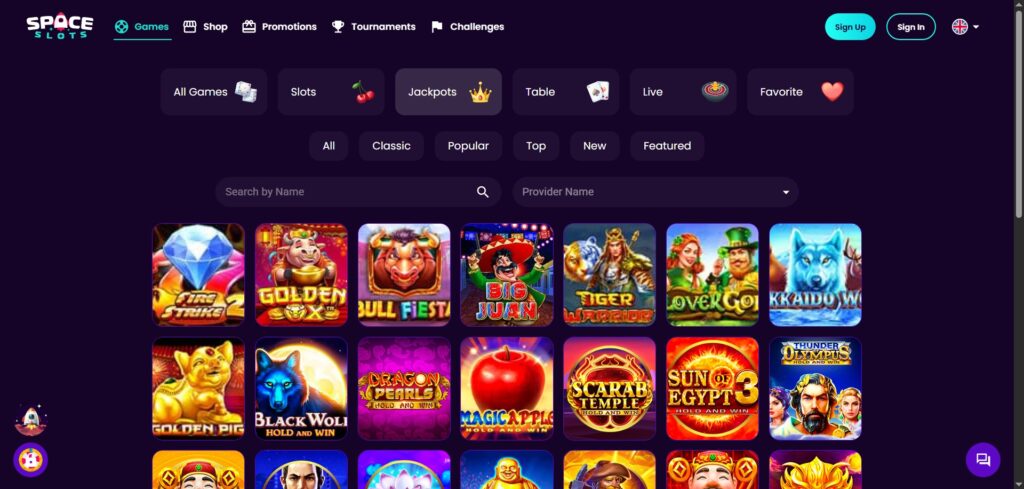 SpaceSlots Casino features a game catalogue of over 5,000 titles, covering everything from classic slots and jackpots to poker tables and live casino games.