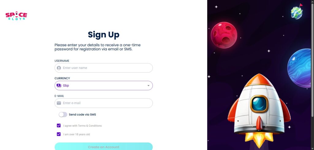 To begin, go to the official SpaceSlots Casino website. On the homepage, locate the “Sign Up” button, positioned at the top right corner of the screen. Click it to launch the registration form.