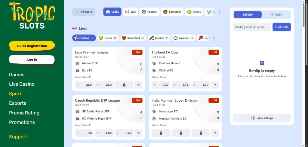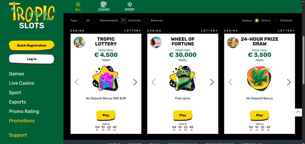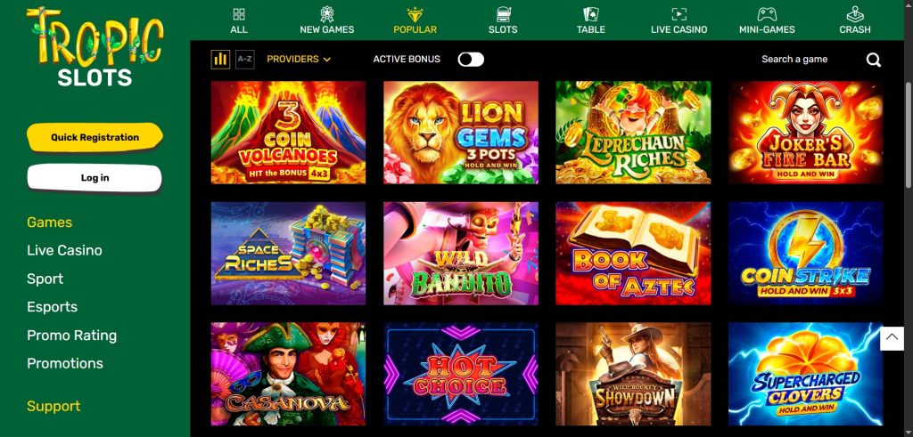 Tropic Slots Casino is an international gambling site owned by Cerberlot N.V.. The site offers 5000 games and sports betting. Its sportsbook covers popular sports such as football, tennis, and basketball, alongside cybersport markets.