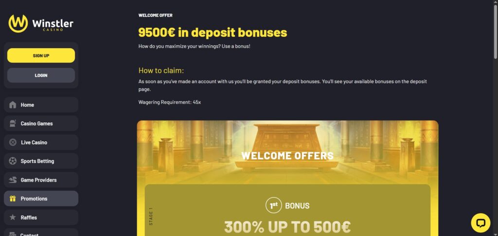 Winstler Casino provides a wide selection of deposit rewards for players. A 45x wagering requirement applies to all bonuses.